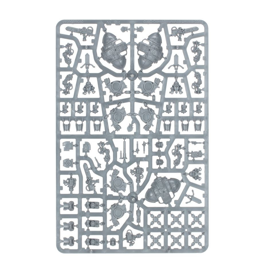 Con questo kit multicomponente di plastica puoi assemblare tre Questoris Knights in scala epica. Ciascuna di queste macchine da guerra può essere equipaggiata con una varietà di armi distruttive, da reaper chainswords e thunderstrike gauntlets per la mischia a thermal cannons, rapid fire battlecannons, avenger gatling cannons, rocket pods e una scelta fra heavy stubbers e meltaguns da montare sullo scafo. Ognuna di queste opzioni ti permette di usare i tuoi Knights in maniera differente in battaglia: potranno eliminare gli scudi dei Titans nemici, dare la caccia ai Knights avversari, o annientare fanteria e corazzati.