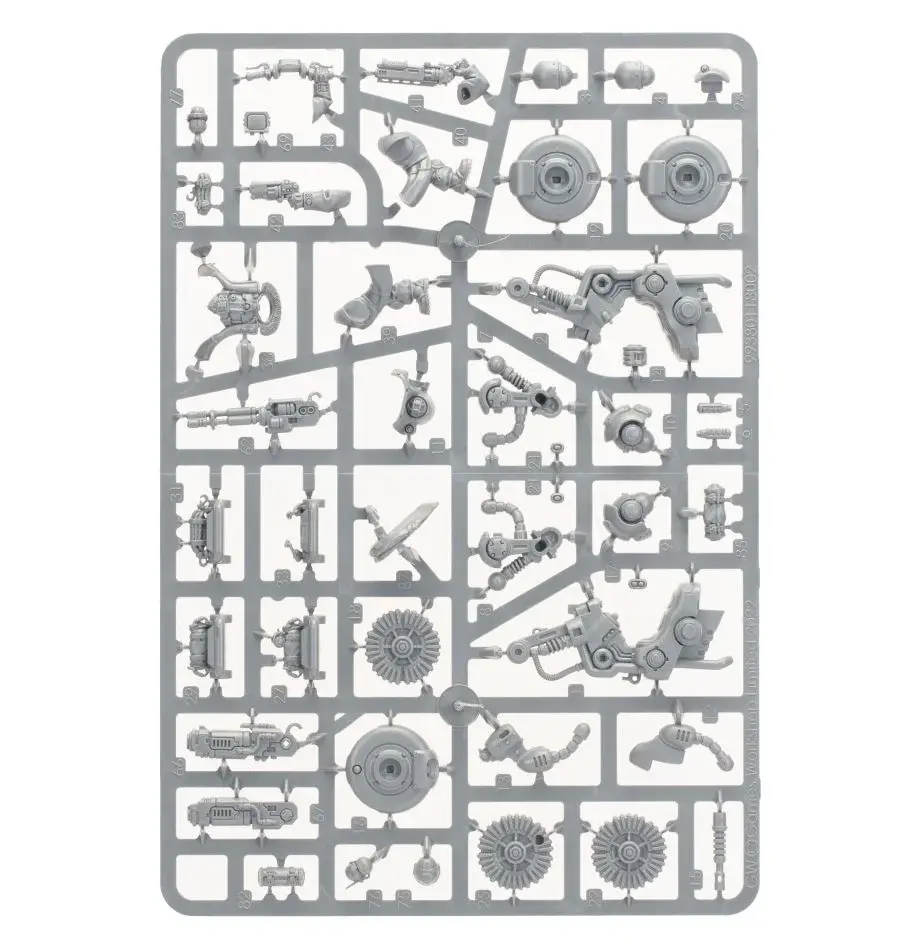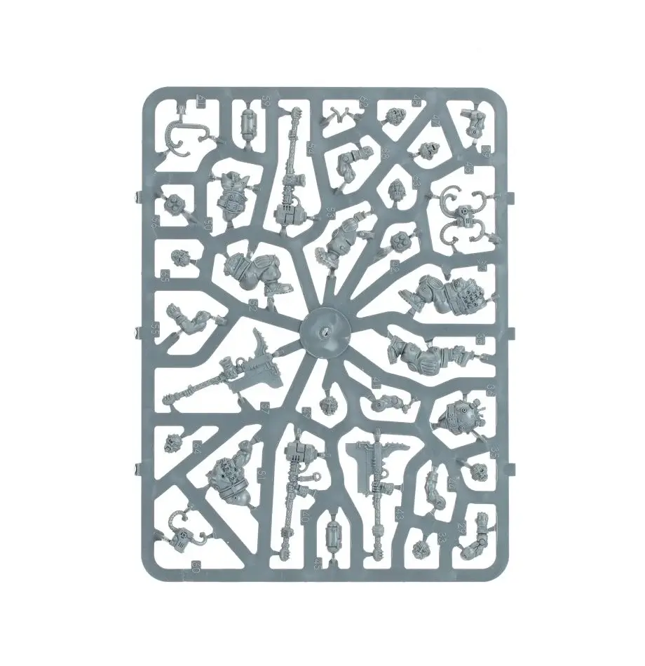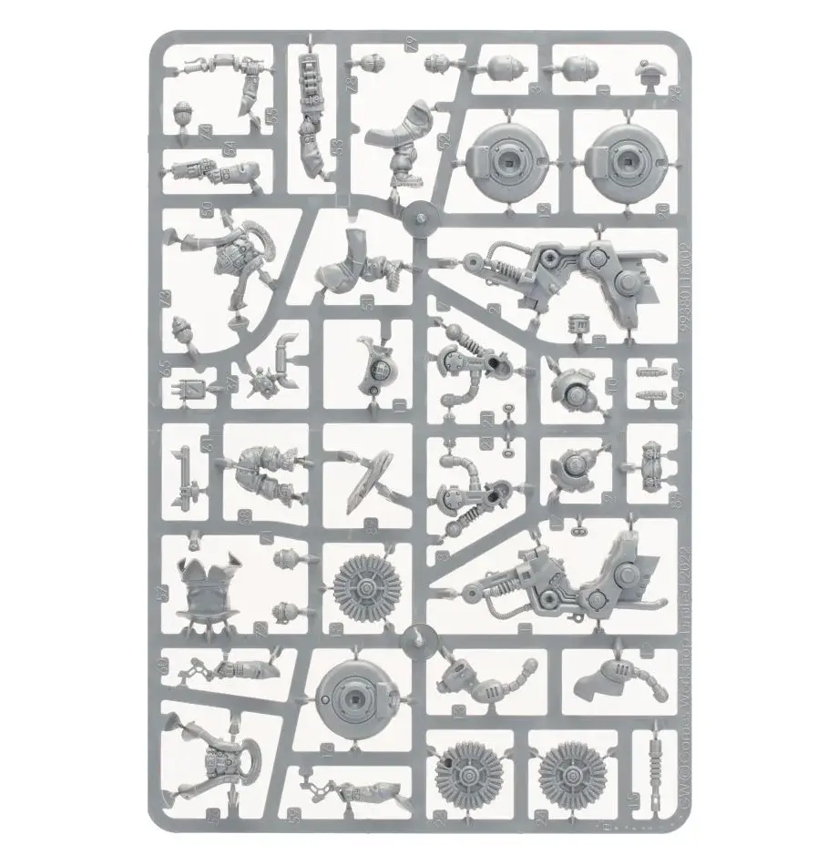 I Fratelli sono una razza di cloni guerrieri resistente e pragmatica e formano le antiche Leghe dei Votann. Dotati di saggezza e determinazione grazie ai Nuclei degli Avi, equipaggiati e corazzati dai poderosi pistoni della forgia, percorrono la galassia alla ricerca di risorse con cui espandere le proprie opere e sopraffare i nemici. I Pionieri Confratelli della Caccia sfrecciano sul campo su moto a rotaia magnetica, aiutando i robusti Guerrieri Confratelli della Caccia e i fenomenali Beserk Cthoniani a conquistare gli obiettivi dietro la guida di temprati Kâhl come il leggendario Ûthar il Predestinato. Per chi vuole onorare gli Avi e conquistare preziosi manufatti, questa scatola è il punto di partenza iniziale per una collezione di Leghe dei Votann, oppure il modo perfetto per ampliare un'armata già esistente. Le unità all'interno sono state selezionate per fornire un nucleo bilanciato ed efficace, l'ideale per partite di dimensioni Pattuglia da Combattimento (modelli per un Livello di Potenza approssimativo di 25) e per risparmiare soldi rispetto all'acquisto dei singoli kit. Questo set include i seguenti modelli multicomponente di plastica: – 1x Ûthar il Predestinato, che può essere assemblato anche come Kâhl – 5x Beserk Cthoniani (incluso uno con un lanciagranate talpa e 2x modelli con granate talpa) – 3x Pionieri Confratelli della Caccia – 10x Guerrieri Confratelli della Caccia – 1x foglio di trasferibili delle Leghe dei Votann, formato da 555 decalcomanie Tutti i modelli sono forniti con le basette appropriate. Le miniature devono essere assemblate e dipinte; consigliamo l'utilizzo della colla per plastica Citadel e dei colori Citadel. I terreni mostrati nelle immagini di questa pagina sono a scopo illustrativo e non sono inclusi.