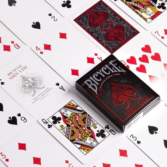 Le Carte Bicycle - Shin Lim sono il frutto di una collaborazione straordinaria tra Bicycle e il celebre illusionista Shin Lim. Questo mazzo non è solo un gioco di carte, ma un'esperienza magica che fonde l'arte della prestidigitazione con il design elegante. Ogni carta è progettata con cura, presentando un 10 di cuori sbiadito che diventa l'elemento chiave per eseguire un trucco magico che Shin Lim stesso ti insegnerà. L'astuccio delle carte è impreziosito da una lamina rossa e argento con dettagli in rilievo, mentre il retro delle carte sfoggia un design personalizzato in argento con il logo di Shin Lim.