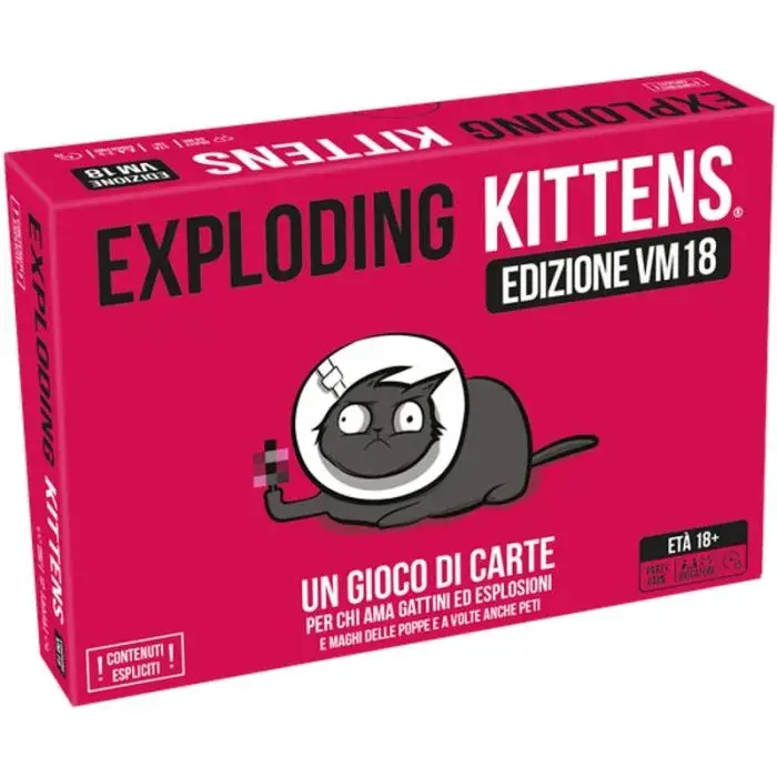 Acquista Exploding Kittens - Edizione VM18 - Pink Edition per aggiungere un tocco di originalità e divertimento alle tue serate di gioco. Questo gioco non solo offre un'esperienza di gioco avvincente, ma è anche un ottimo modo per rompere il ghiaccio e far ridere tutti i partecipanti. La possibilità di combinare il mazzo con altre edizioni permette di adattare il gioco a gruppi più numerosi, fino a 9 giocatori. Inoltre, l'edizione VM18 è perfetta per chi cerca un gioco da tavolo che esca dagli schemi convenzionali, con un tocco di umorismo audace e creativo. Non perdere l'occasione di scoprire un gioco che promette ore di divertimento e risate.