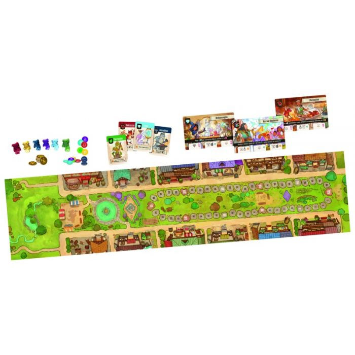 In un regno magico, un villaggio si risveglia e draghi artigiani preparano caffè e torte! In Flamecraft, da 1 a 5 giocatori assumono il ruolo di Flamekeepers, raccogliendo oggetti, posizionando draghi e lanciando incantesimi per potenziare i negozi della città. I draghi sono specializzati (pane, carne, ferro, cristalli, piante e pozioni) e i Custodi della Fiamma sanno quali negozi sono la casa migliore per ciascuno. Visita un negozio per ottenere oggetti e un favore da uno dei draghi presenti. Gli oggetti raccolti possono essere utilizzati per incantare un negozio, guadagnando reputazione e i favori di tutti i draghi nel negozio. Se sei abbastanza fortunato da attrarre draghi fantasiosi, avrai l'opportunità di assicurarti una reputazione ancora maggiore.