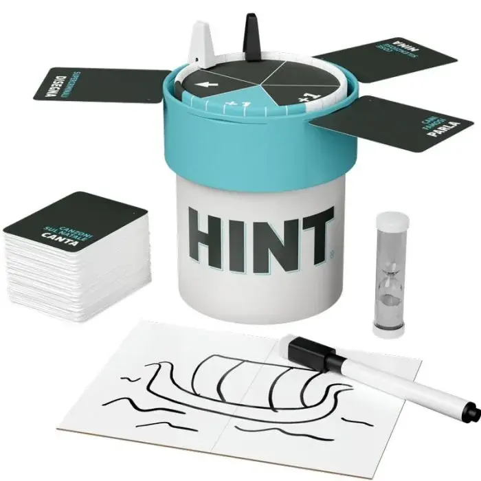 Hint è un gioco da tavolo party in cui dovrete pensare in fretta: avete solo 90 secondi per dare indizi su cinque diverse parole, facendo attenzione che i vostri compagni di squadra non dicano la parola proibita!