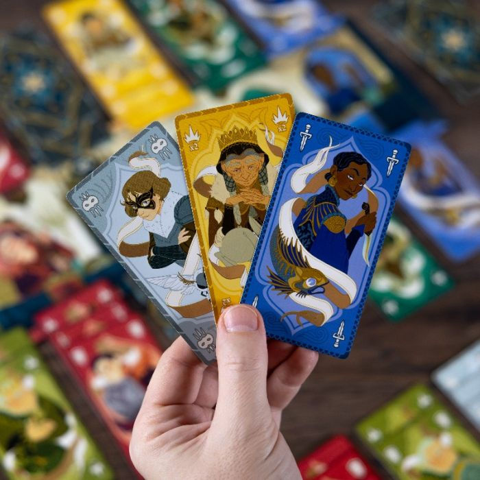 Intrighi a Corte è un gioco dall'estetica ricercata e componenti di pregio come le 90 carte cortigiano con effetti foil e un tappetino in stoffa con le illustrazioni delle famiglie. Ogni casata è contraddistinta da un colore: blu per le Carpe, verde scuro per i Cervi, verde chiaro per i Rospi, giallo per le Lepri, grigio per le Farfalle e rosso per gli Usignoli. Lasciatevi avvolgere dall'atmosfera melliflua della corte dove cortigiani e nobili vassalli tessono i loro intrighi, tra lusinghe e calunnie sussurrate, in perenne lotta per il potere.